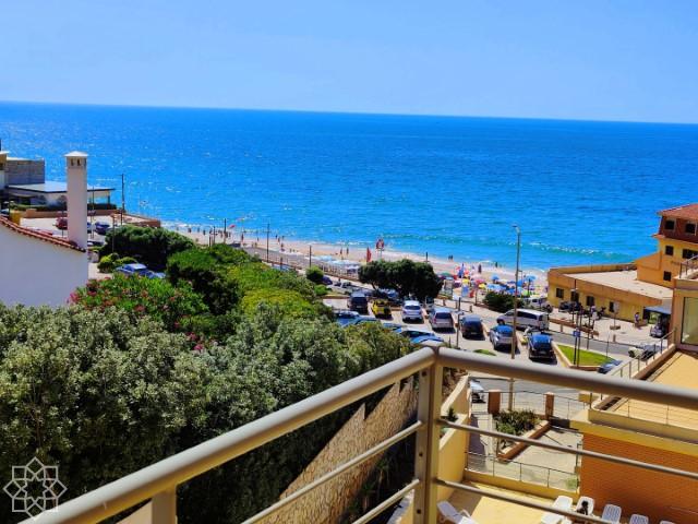 Närmast stranden i Praia da Areia Branca på Silverkusten ligger denna T1 med vidsträckt utsikt.